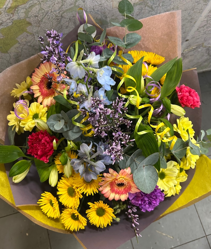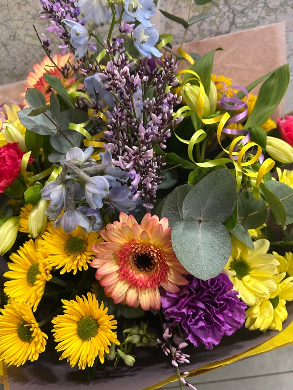 A selection of bright colours reflecting on summertime created using seasonal blooms.
